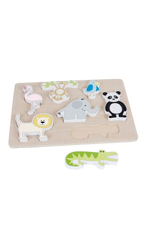 Features: Fun wooden puzzle with 7 different safari animals The animals are designed to fit perfectly in small hands and be easy to grip. The shape of the animals also makes the puzzle and off-puzzle play fun.